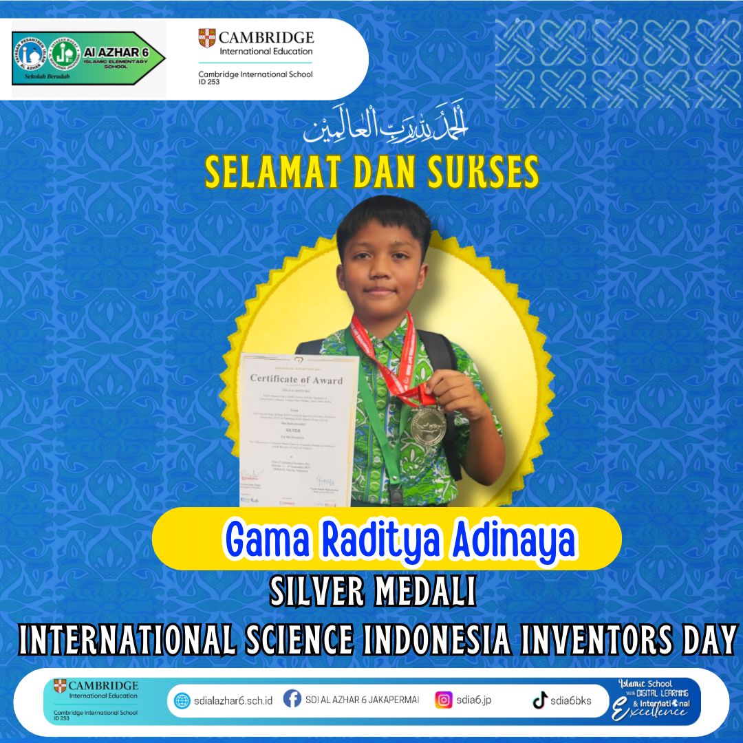 Alhamdulillah ananda Gama Raditya Adinaya berhasil meraih Silver Medali dalam kompetisi International Science Indonesia Inventors Day. Selamat kepada ananda Gama atas prestasi yang telah diraih. Semoga tetap terus berprestasi lebih baik lagi. Aamiin. Kamu hebat, keren, dan terbaik.