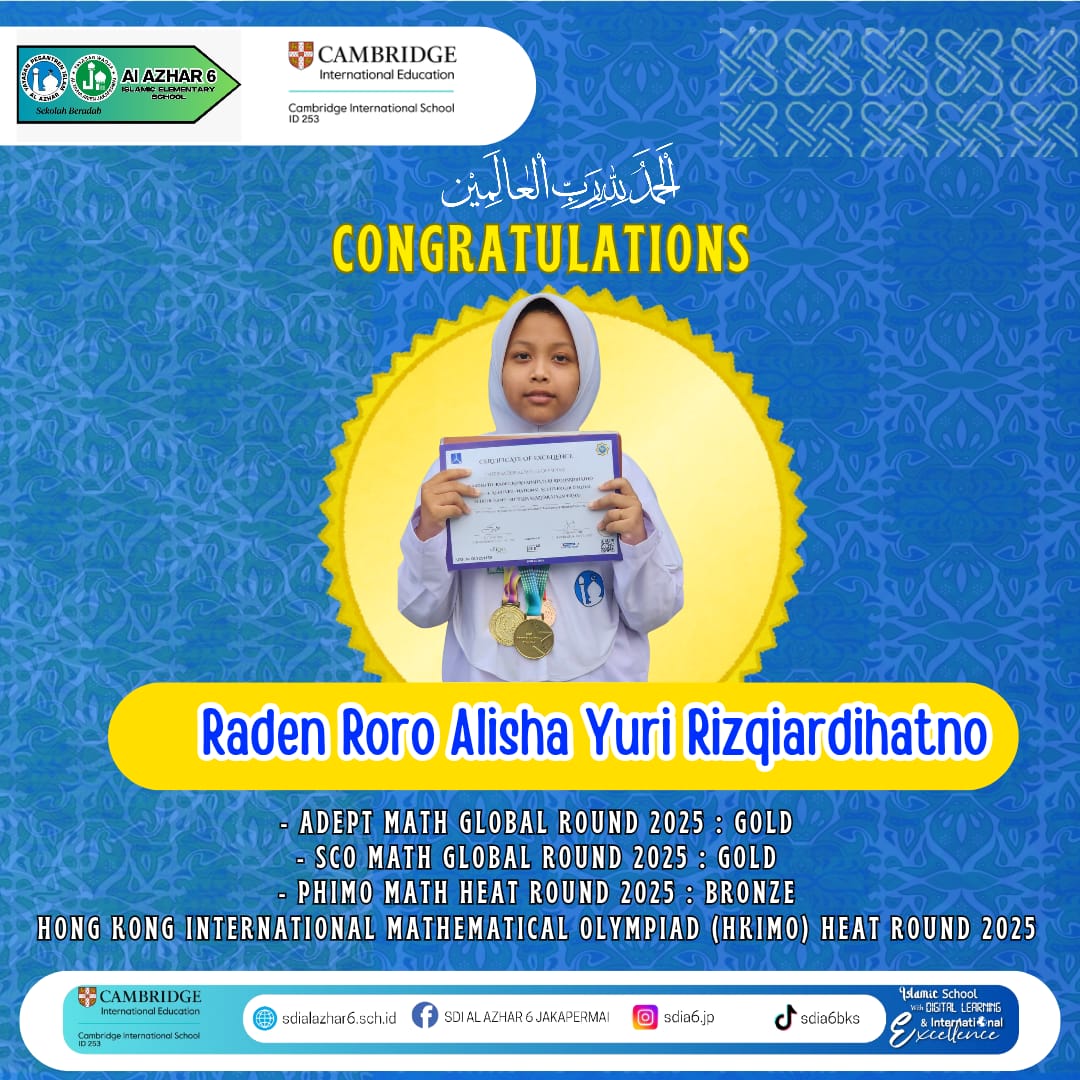 Alhamdulillah, selamat kepada Ananda Raden Roro Alisha Yuri atas prestasi yang telah diraih pada Kompetisi Hong Kong International Mathematical Olympiad (HKIMO) Heat Round 2025. Semoga tetap terus berprestasi lebih baik lagi. Aamiin. Kamu hebat, keren, dan terbaik.